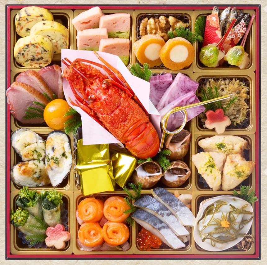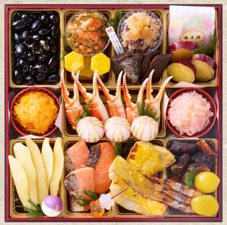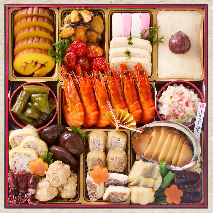 豪華食材や祝い肴を盛り込み、豊かに栄え発展する一年を願う豪勢な重。